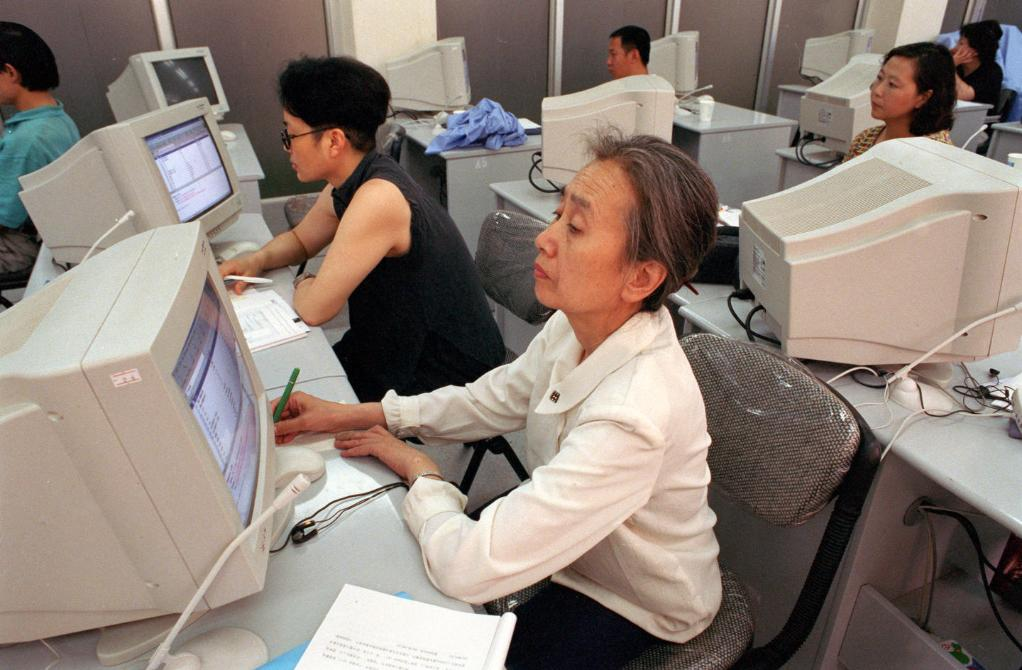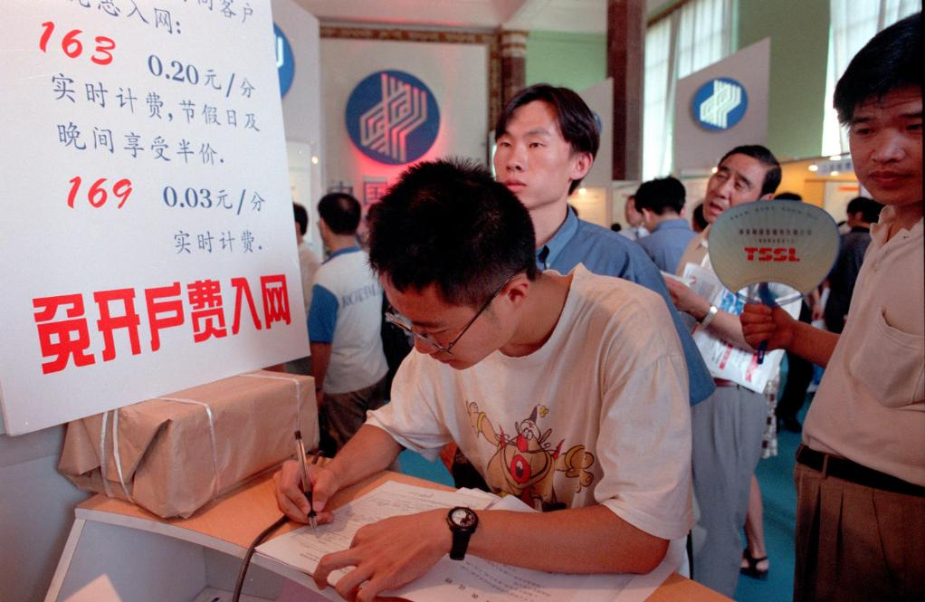 2000年8月,北京市民在北京市电信局办理上网手续。新华社记者 张旭 摄