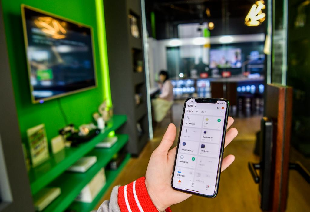 2019年11月7日,在位于重庆的京东电器超级体验店,店员展示智能家居控制系统。新华社记者 刘潺 摄
