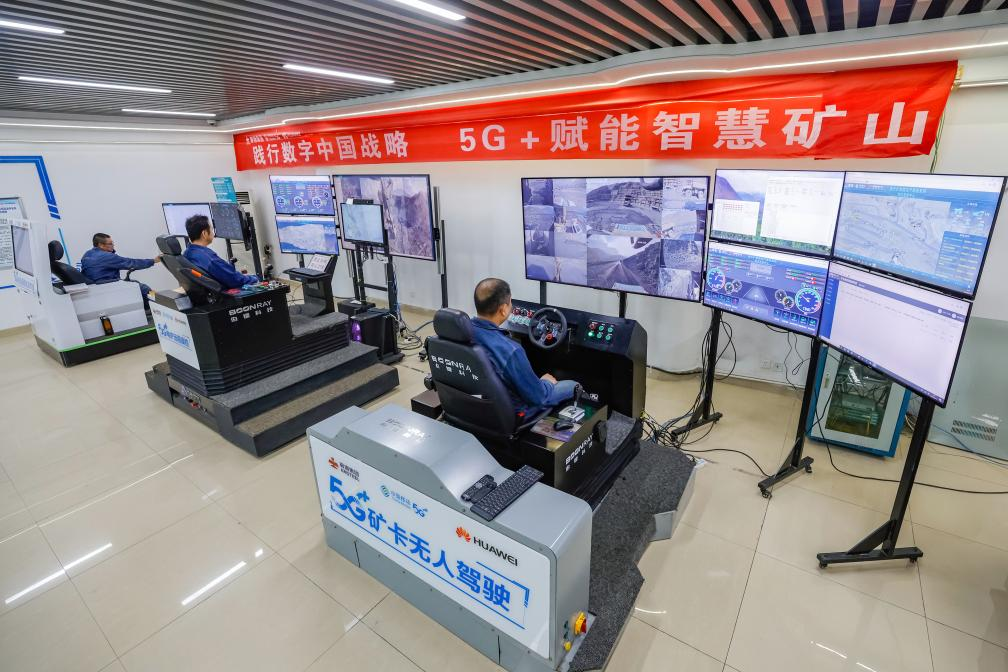 2024年4月11日,工作人员在四川攀钢矿业朱兰铁矿智慧管控中心通过露天矿智能生产调度系统监控5G无人钻机、无人电铲、无人自动驾驶矿车的远程自主作业情况。新华社记者 沈伯韩 摄