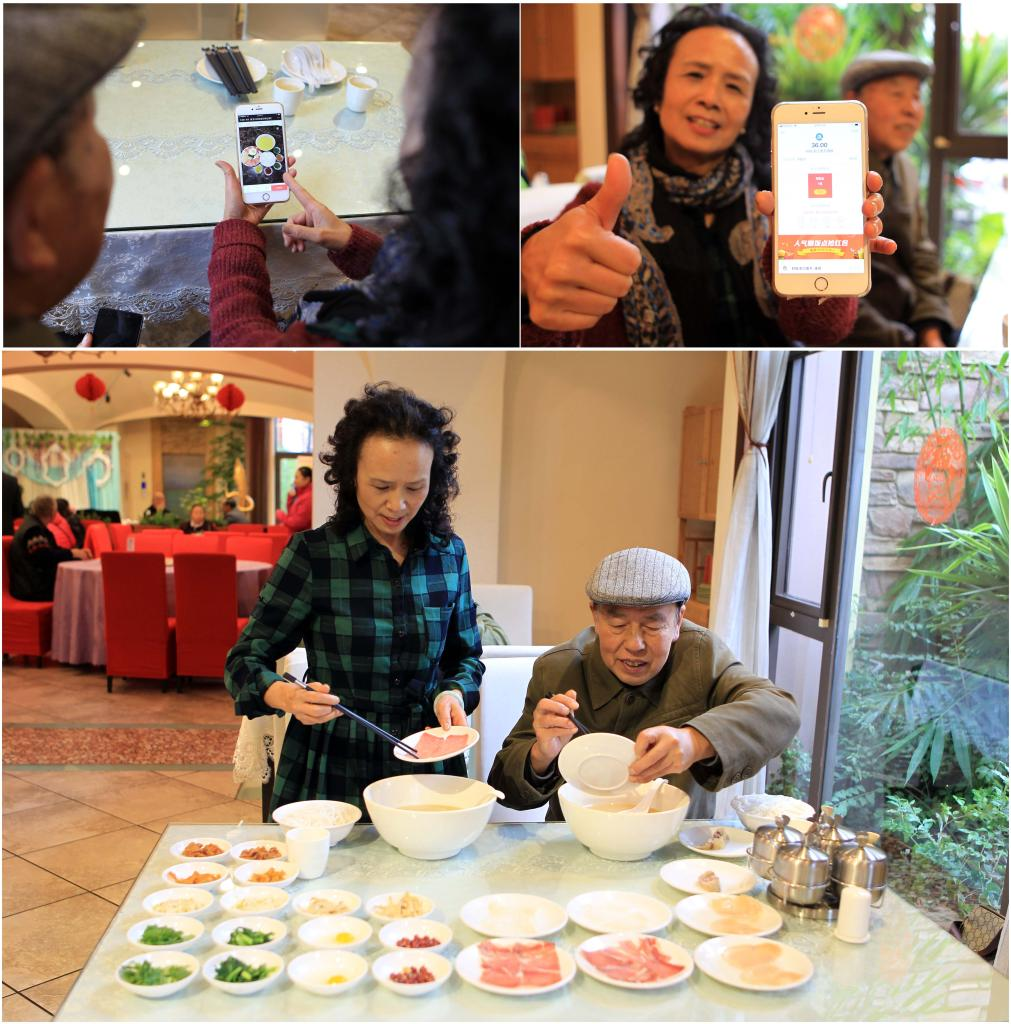 2017年10月24日,两位老人在昆明市西山区一家餐厅用手机点餐并支付(拼版照片)。新华社记者 井辉辉 摄
