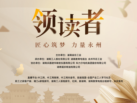 直播回顾丨匠心筑梦 力量永州——2024年创新读书类大型直播节目《领读者》永州专场 阅读是精神的滋养,是心灵的还乡,是力量的赋能。此次《领读者》永州专场由湖南省总工会主办,湖南工人报社有限公司、湖南教育电视台、永州市总工会承办。节目以“匠心筑梦,力量永州”为主题,初心矢志不渝,忠诚赤心相待,奉献兢兢业业,创新发奋图强,创造独具匠心,创业坚持不懈,工运波澜壮阔!这种种力量汇聚成各行各业产业工人书写建设现代化新湖南永州篇章的强劲动力。8位领读者走上舞台,领阅劳动之美,诵读磅礴之力,大力弘扬了劳模精神、劳动精神、工匠精神。2024年11月25日15:00,匠心筑梦 力量永州——2024年创新读书类大型直播节目《领读者》永州专场,中工网首页、微博、抖音号同步直播。