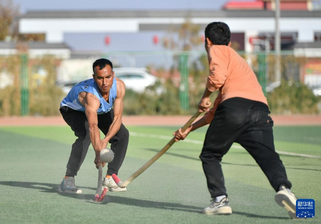 “麦热球是一项非常古老的运动,我爷爷的爷爷那时候就开始玩。”阿卜杜拉艾孜则说。麦热球,又被称为“维吾尔族曲棍球”,是在新疆和田地区广泛流行的古老运动。规则类似于现代曲棍球,但是不设置守门员,把球打到对方球门里即为得分。2021年,这项运动(维吾尔族曲棍球)被正式列入国家级非物质文化遗产代表性项目名录。阿卜杜拉艾孜则从很小就开始接触麦热球,在农闲时他常常和兄弟们打上几场麦热球。他说:“小的时候,爸爸教会我打麦热球,现在我要把这项运动带来的快乐传递给更多人。”
