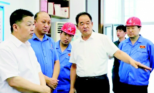中阳县人大常委会副主任、县总工会主席雷占平(左四)在中阳钢铁有限公司指导工作