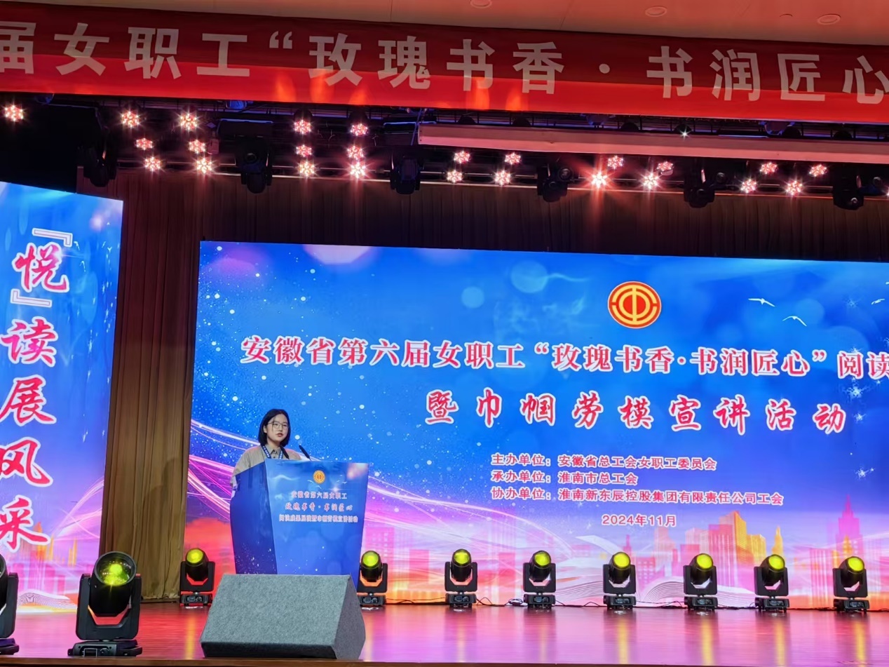 活动由安徽省总工会女职工委员会主办,淮南市总工会承办,淮南新东辰控股集团有限责任公司工会协办。活动宣讲环节,全国人大代表、安徽省劳动模范李杨分享了她以岗位创新为引领,用实干成就梦想的奋斗历程。