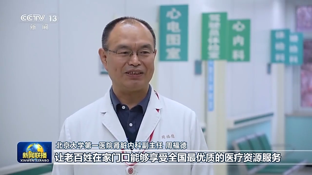 北京大学第一医院肾脏内科副主任 周福德:专家到这里来,让老百姓在家门口能够享受全国最优质的医疗资源服务,便于他们看病,便于基层医生的医疗水平提高。