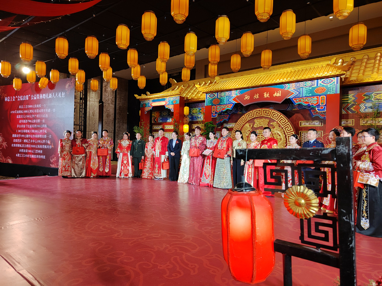 为引导广大青年职工树立正确的婚恋观、生育观、家庭观,弘扬岗位建功精神,推进家庭家教家风建设,秦皇岛市总工会举办了此次职工集体婚礼,大力倡导移风易俗,破除婚嫁大操大办、高额彩礼等陈规陋习,培育积极向上的婚俗文化,在全社会营造社会主义家庭文明新风尚。通过向相关企事业单位发送招募信息、线上招募、出街海报宣传等渠道,广泛吸引青年职工报名,最终有十对新人入选集体婚礼名单。