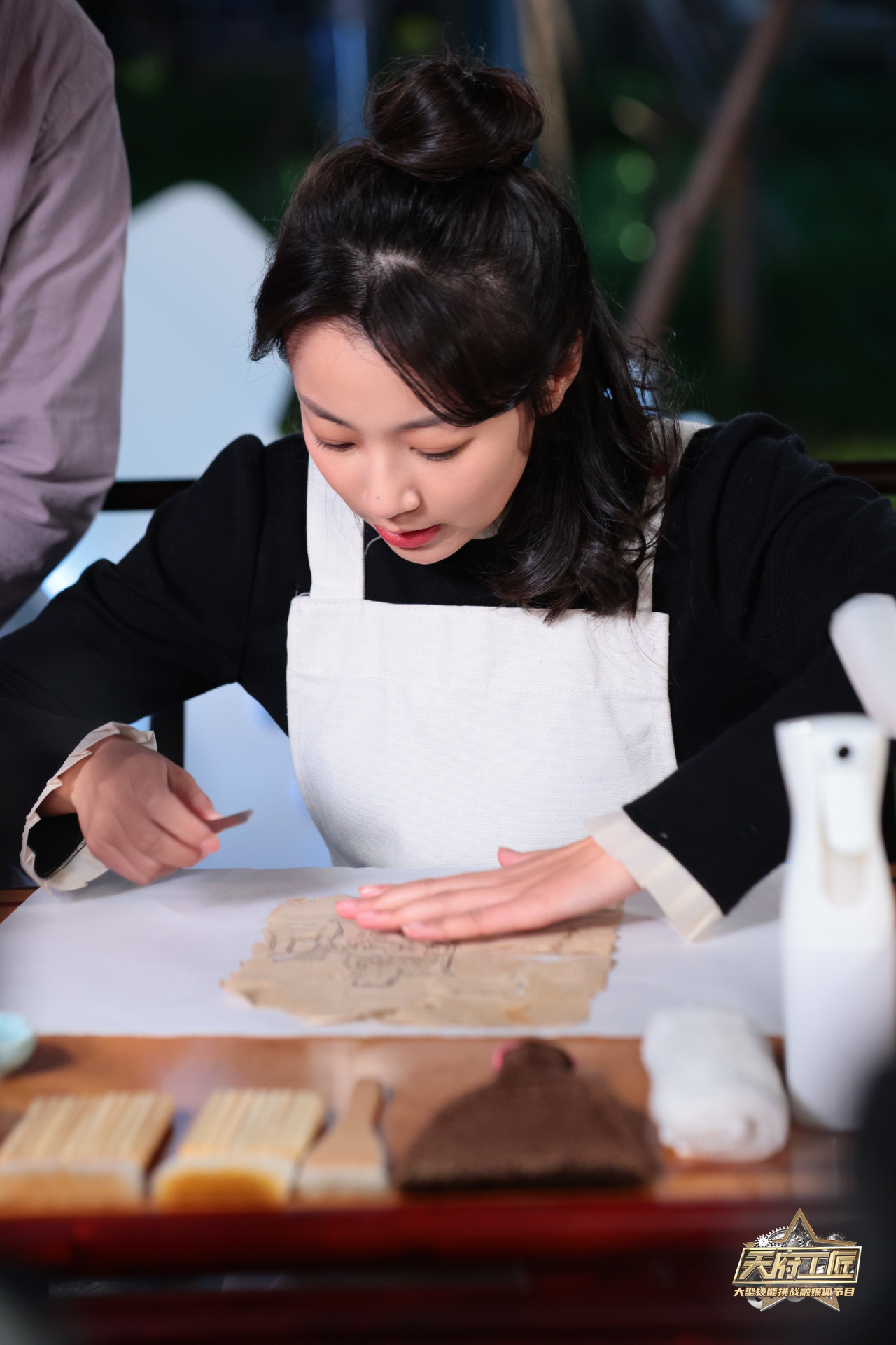 上海浙申家具有限公司技术总指导、“上海工匠”蒋晓东和四川西部文献修复中心副主任兼技术总监、四川省省级非物质文化遗产代表性传承人、“四川工匠”“成都工匠”鲁萌,共同迎接了《时间“补”手》这一创意挑战。挑战以模拟文物发掘为背景,一张受损图纸在混杂的纸堆中被“发现”。在限定时间内,鲁萌需从纷乱的纸张中挑选并拼接出完整图纸,同时对其进行修复。而蒋晓东则需依靠图纸指引,在一系列含有迷惑元素的木质组件中,蒙眼仅凭手感精准挑选所需部件,并将其复原为图纸所示的形状。这些挑战,不仅是对双城工匠技艺的极致考验,更是沪蓉两地文化与技艺的一次精彩碰撞。