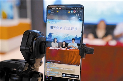 图为主播用手语详解岗位需求与薪资待遇。 何欣摄