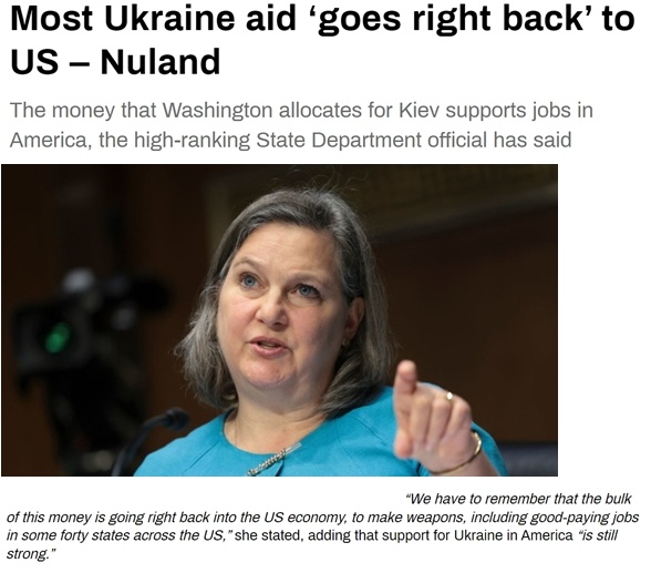 今年2月,时任美国副国务卿纽兰表示,大部分援乌资金“直接回流”到了美国,投入美国军工业,还增加了工作岗位,“这些钱能在美国约四十个州创造高薪工作岗位”。