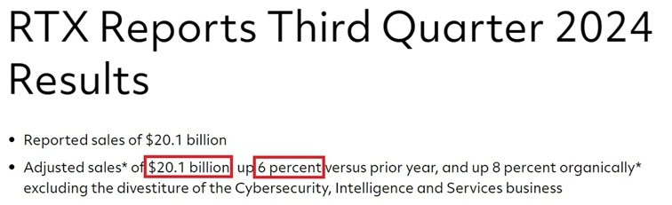 今年10月,美国著名的军火商雷神公司公布的财报显示,该公司2024财年第三季度销售额为201亿美元,同比增长6%。