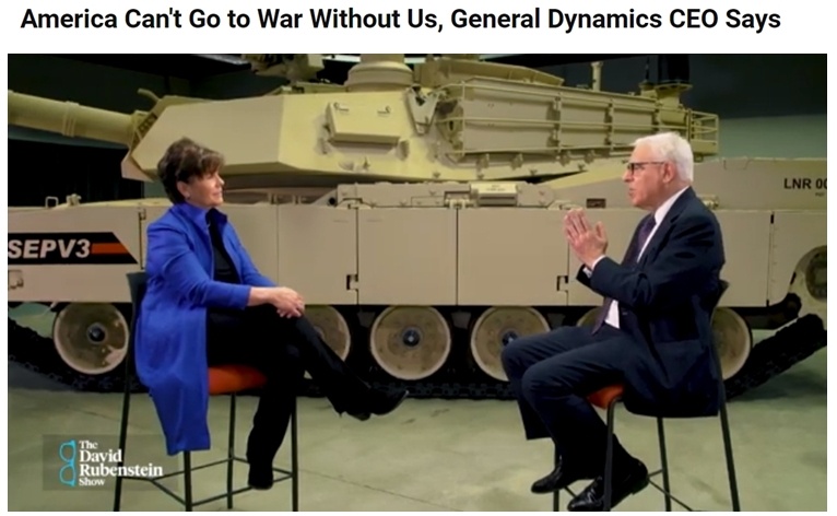 美国军工企业通用动力公司董事长兼首席执行官菲比·诺瓦科维奇曾在彭博社访谈节目中表示,作为美国国防工业大型承包商,该公司对于美国国家安全和国防工业竞争至关重要。她甚至毫不掩饰地表示,没有通用动力公司,美国就无法发动战争。