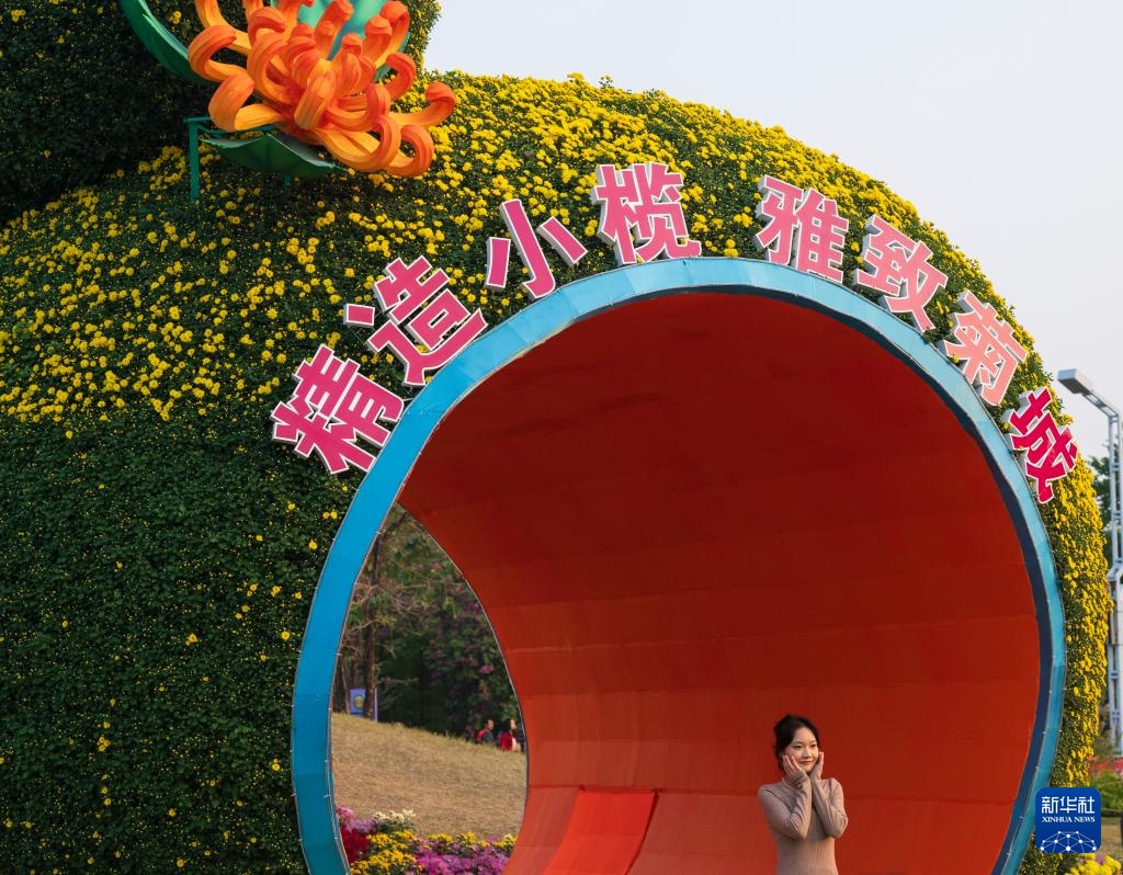12月5日,游客在2024年小榄菊花会上拍照留念。新华社记者 才扬 摄