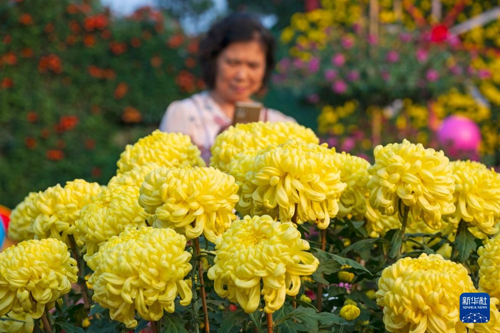 12月5日,游客在2024年小榄菊花会上拍摄菊花。新华社记者 才扬 摄