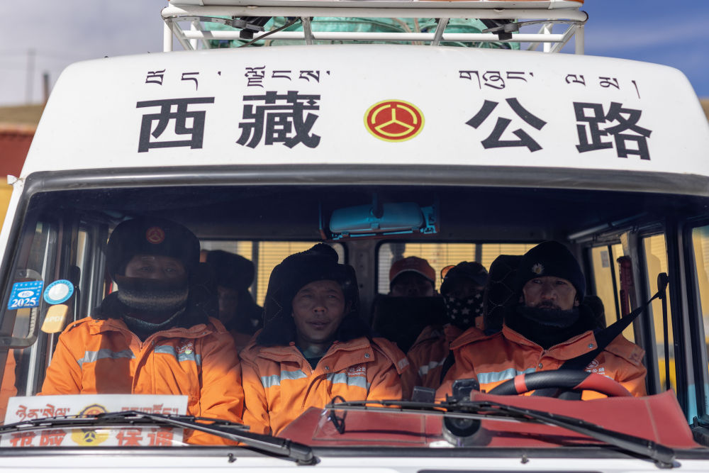 “天下第一道班”的养路工人们乘车去养护道路(12月1日摄)。新华社记者 姜帆 摄