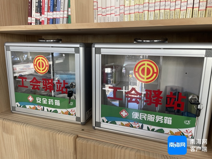 走进万宁市总工会工会驿站,饮水机、微波炉、电风扇、桌椅、应急医药箱、充电排插等便民设施摆放有序,几名环卫工人在总工会驿站内有说有笑,正通过休息缓解户外劳动的疲惫。