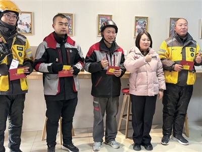 寒冬至,暖“新”升级。近日,北戴河区总工会又联合北戴河区委社会工作部两新工委,在海二路工会驿站挂牌“秦快哥”智能驿站。现场为外卖员、快递员等户外劳动者录入驿站人脸识别系统,并启动爱“新”暖冬行动,为户外劳动者发放免费体检卡、防寒手套、延时午餐体验券、奶茶等慰问品,为奔波在寒风中的他们送上一份特别的温暖。