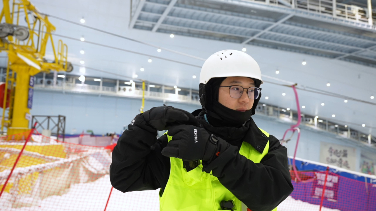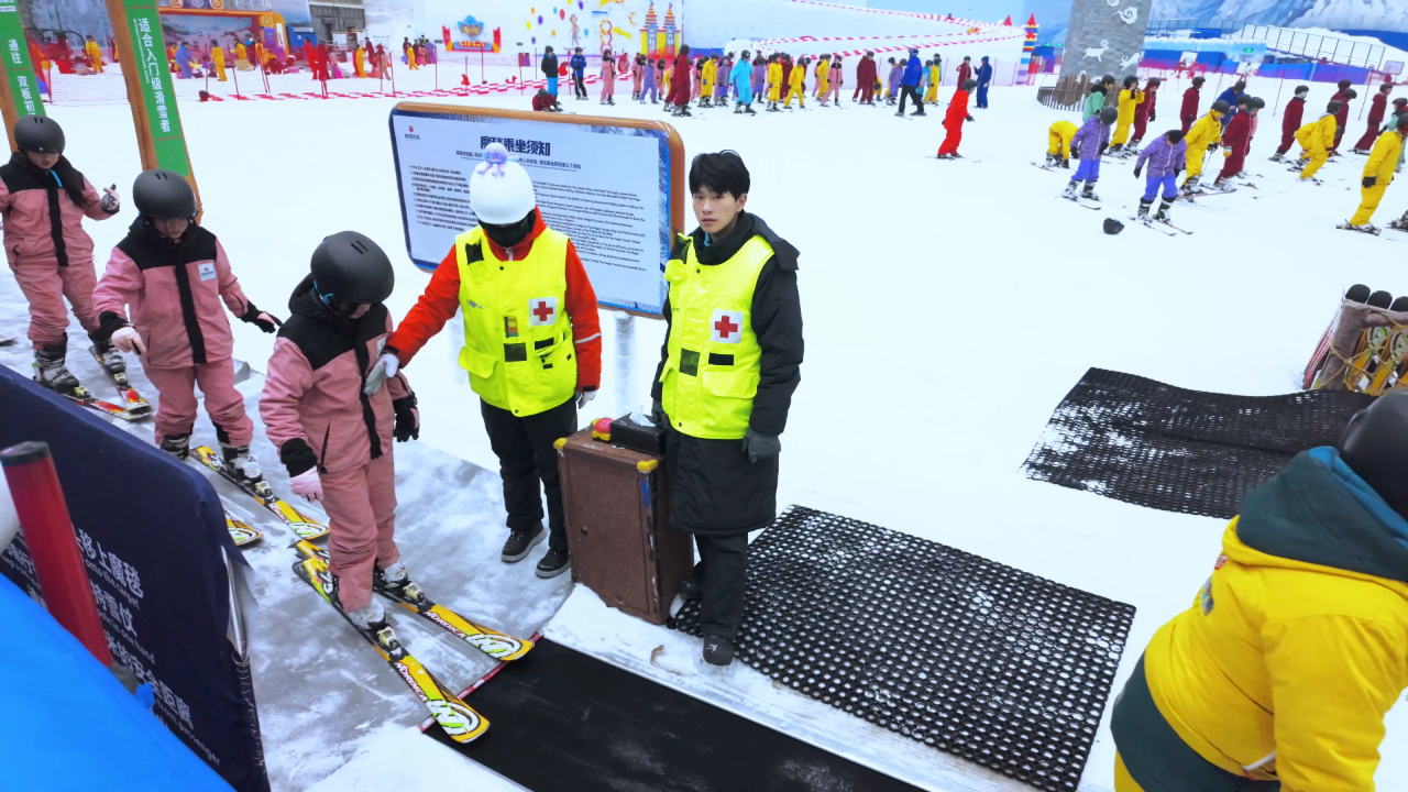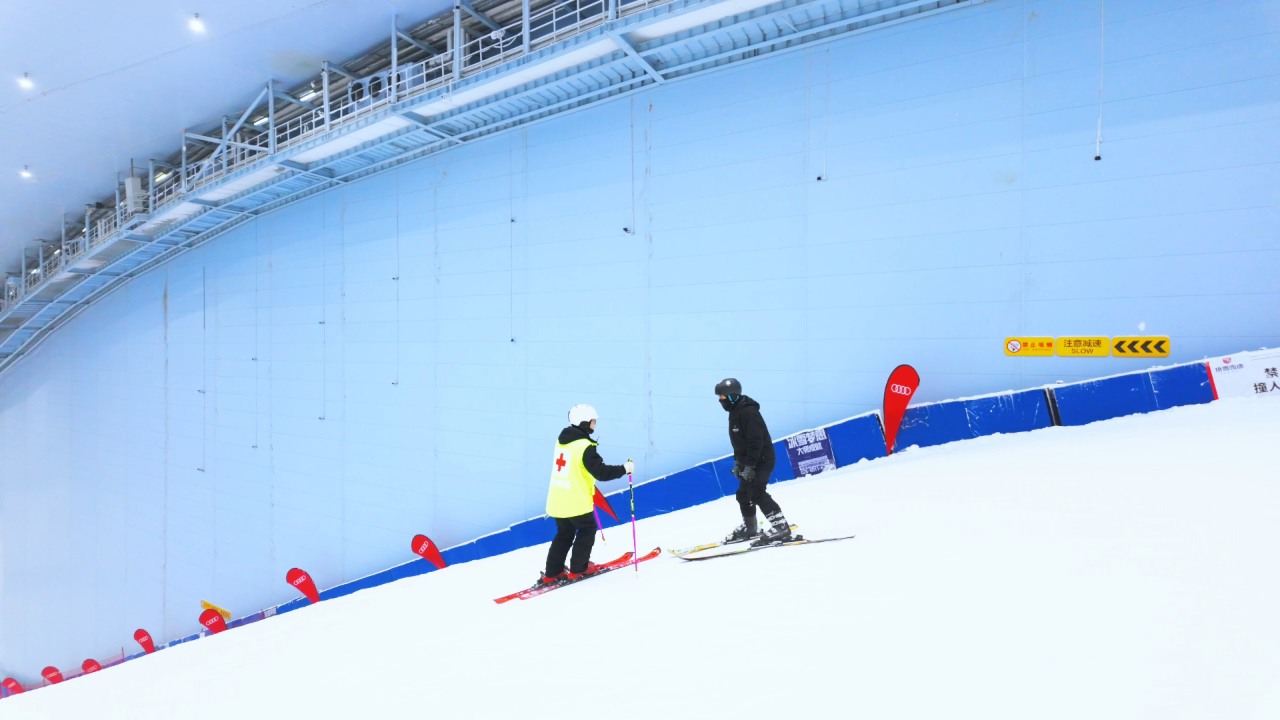 王福林供职的成都热雪奇迹室内雪场,位于成都都江堰市区内,在高新技术加持下,一年四季皆可看雪、玩雪、赏雪。为确保滑雪场整体安全,他和巡救员班组成员的日常工作事无巨细,比如要在正式营业前40分钟进入雪场,对滑雪道、缓冲区及设施设备进行细致检查,还要逐一安插防护措施。巡查过程中,一旦发现滑行者摔倒、相撞的情况,需要第一时间抵达处置,“我们要做的,就是成为守护雪场滑行者的一道安全屏障。”王福林如是描述“滑雪巡救员”在他心中的深意。