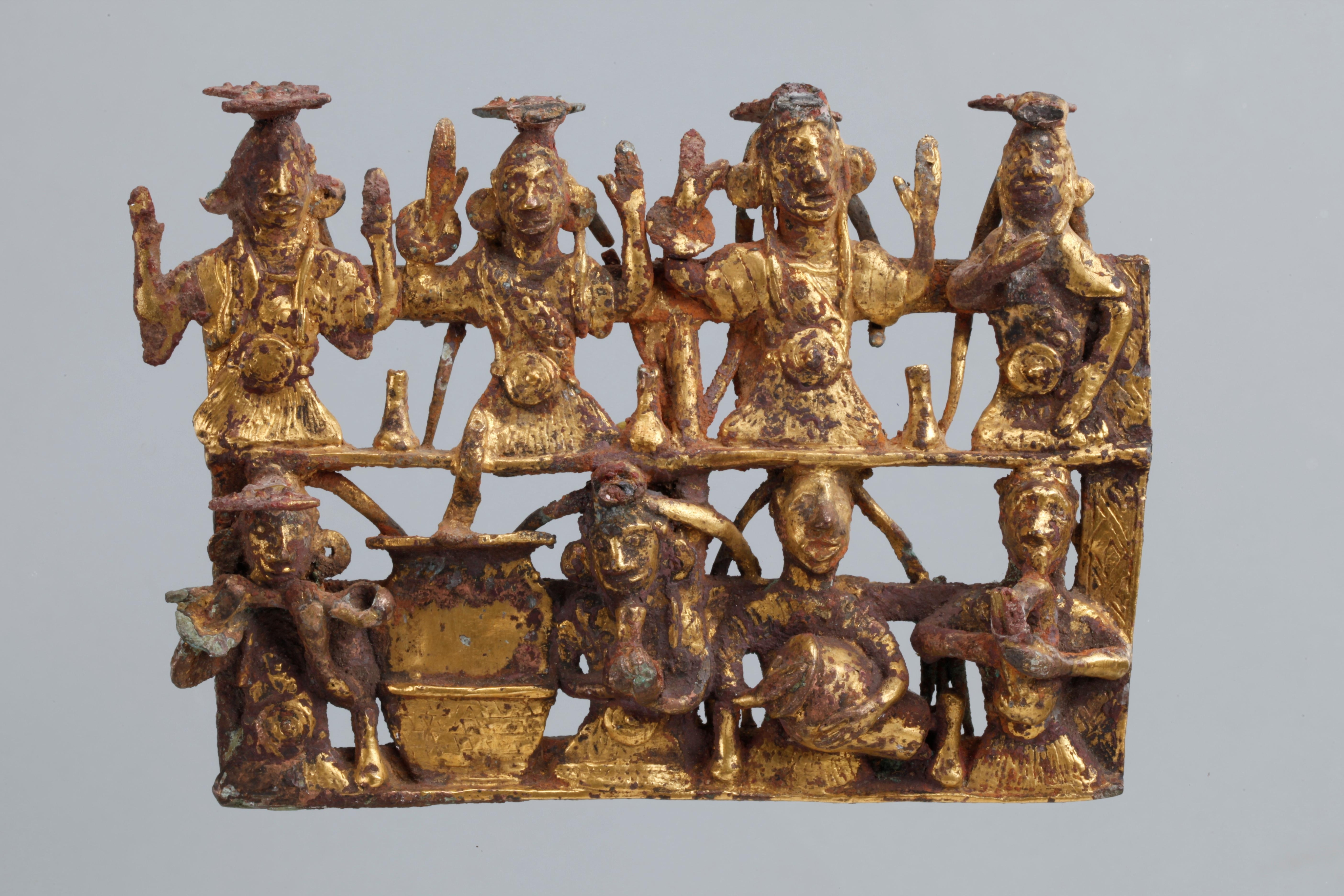 △鎏金八人乐舞铜扣饰 云南省博物馆藏