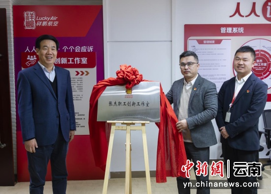 中新网云南新闻12月31日电(周柄帆)27日,民航西南地区管理局副局长、工会主席罗全福与祥鹏航空总裁张志刚共同为“张杰职工创新工作室”揭牌。