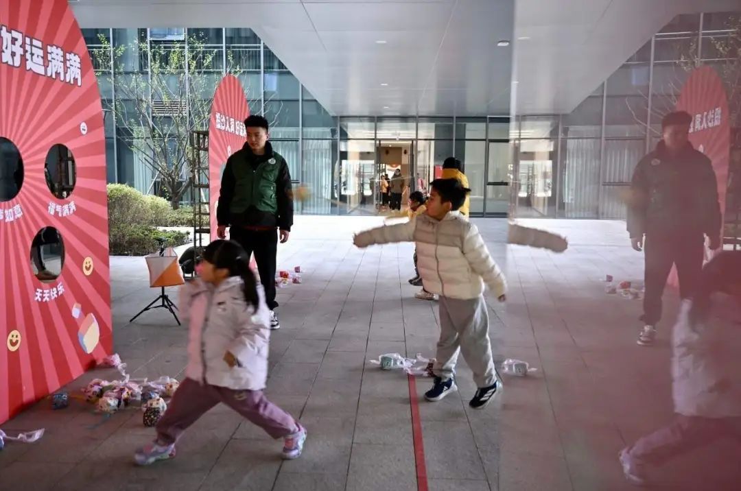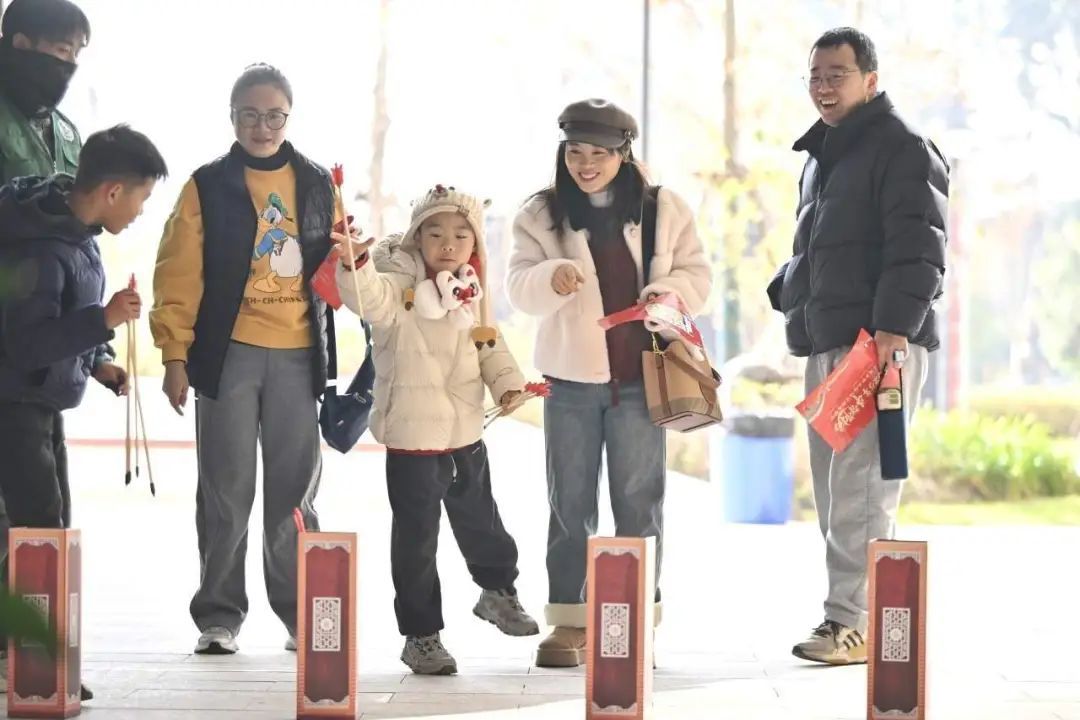 “快乐击打,喜气洋洋”“投壶纳祥,如意久久”“投沙入洞,好运满满”“飞盘飞舞,吉祥进袋”“拼图成景,幸福连连”……现场共设计了6个有趣的游戏。运动会正式开始前,参与者先到检录处领取计分设备和地图,按照地图提示完成任务,即可打卡累计积分。