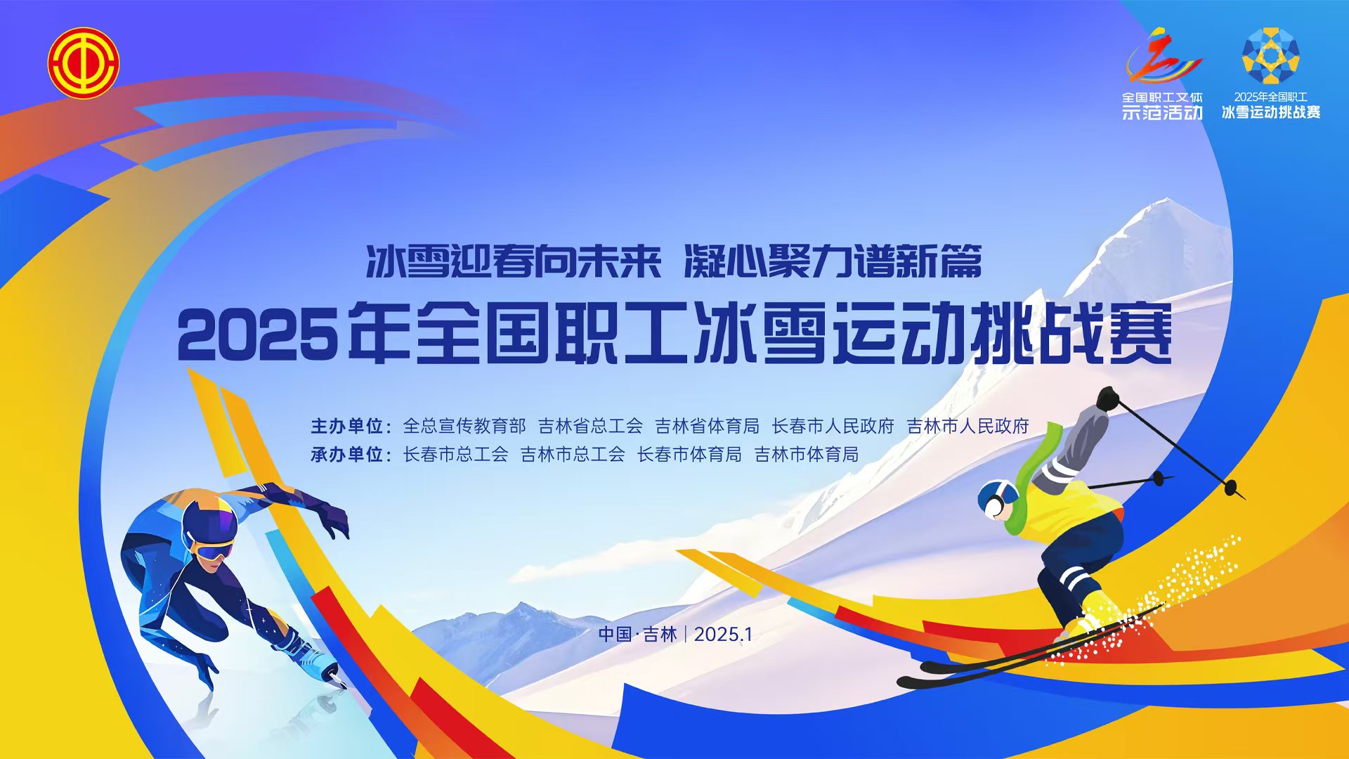 直播回顾丨“冰雪迎春向未来 凝心聚力谱新篇”——2025年全国职工冰雪运动挑战赛开幕式为全面宣传贯彻党的二十大和二十届二中、三中全会精神,贯彻落实国务院办公厅《关于以冰雪运动高质量发展激发冰雪经济活力的若干意见》,巩固和扩大“带动三亿人参与冰雪运动”成果,以冰雪运动为引领,打造健康文明、昂扬向上、全员参与的全国职工文体示范活动,全国职工冰雪运动挑战赛定于2025年1月6日-8日在吉林省举办。本届全国职工冰雪运动挑战赛设吉林市、长春市两个2个赛区,雪上项目设高山滑雪(大回转)男子单板、男子双板、女子单板、女子双板比赛;冰上项目设速滑馆举行500米、1000米速度滑冰男子、女子比赛;趣味类比赛设雪地自行车环场地赛男子、女子比赛,雪地飞盘、冰上龙舟趣味竞赛。1月6日16:00,中工网首页、微博、抖音号同步直播。