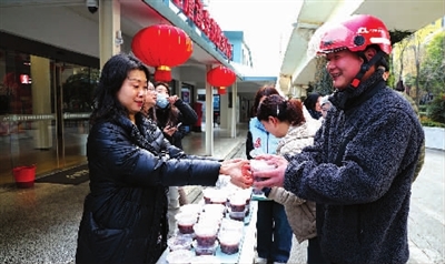 漕溪党群服务中心爱心加油站与华富社区食堂靠在一起,食堂烧粥,工会干部打包,这条流水线格外“有温度”。“拿到手里竟然是热的!”来自河南的顺丰快递员小梁在社区骑手对接群里收到活动消息后,专程赶到驿站,她的老家在河南北边,腊八节没有喝粥的习惯,“没想到能在上海喝一碗腊八粥,还是免费的!”