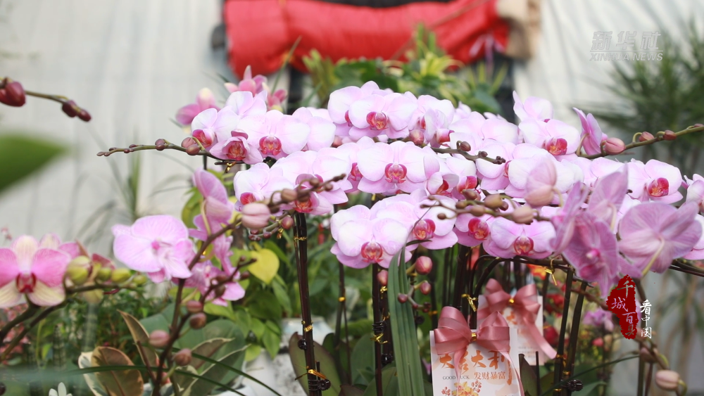 春节临近,山东省枣庄市市中区齐村花卉市场迎来了年宵花销售旺季。蝴蝶兰、蕙兰等各色花朵娇艳欲滴、争奇斗艳,市民驻足于花丛之间赏花购花、拍照打卡,喜气洋洋迎接新春佳节的到来。