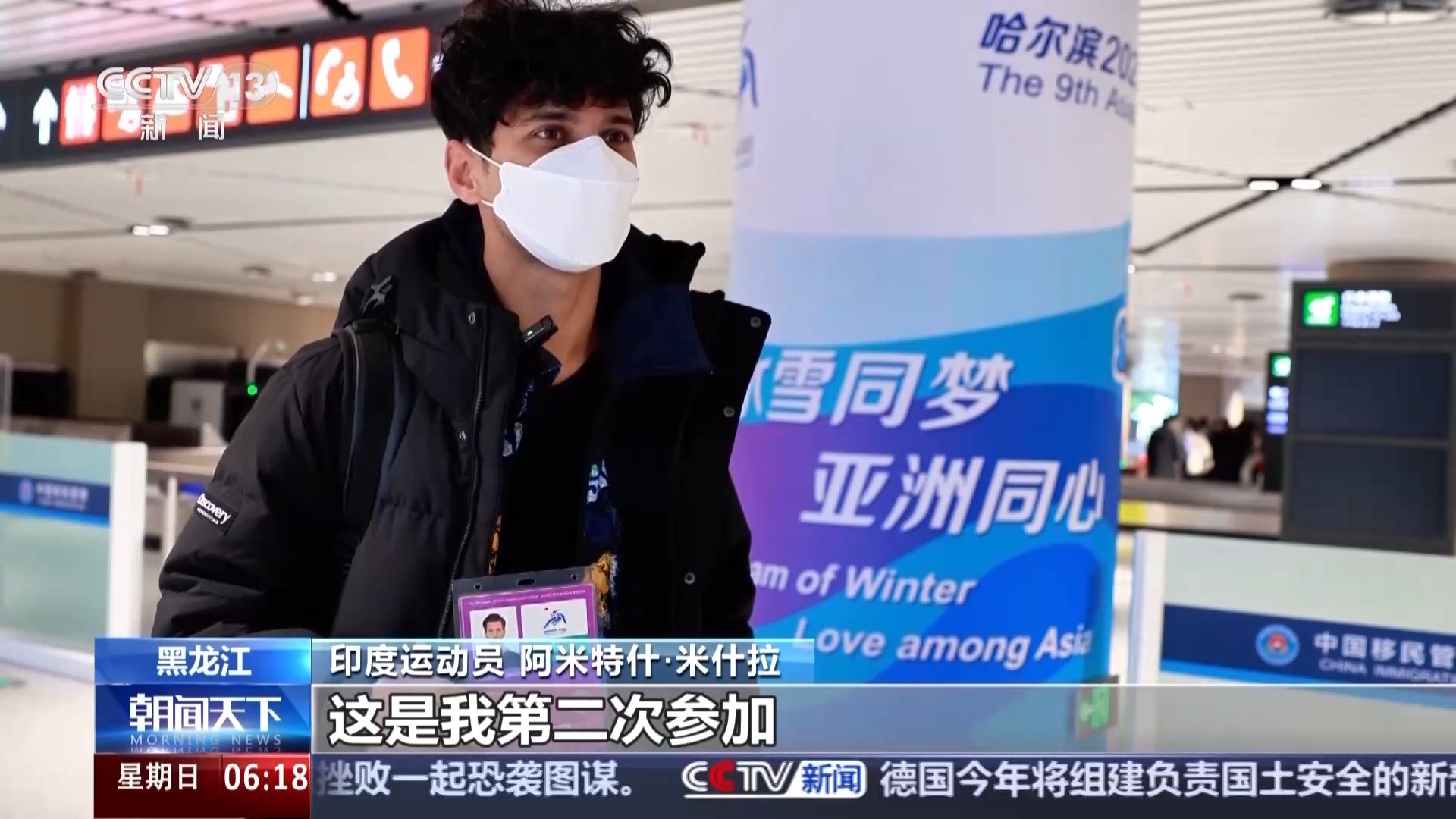 1月10日晚上10点钟,来自韩国首尔的CZ684次航班抵达哈尔滨太平国际机场。印度运动员阿米特什·米什拉成为哈尔滨机场口岸首个使用亚冬会身份注册卡入境人员。2025年1月1日0时至3月1日24时,外籍亚冬会运动员及相关工作人员,可凭本人有效护照或者其他国际旅行证件,和有效的亚冬会身份注册卡多次入境出境。