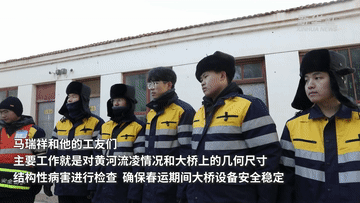 三盛公黄河铁路特大桥上,呼和浩特铁路局乌海工务段乌海路桥车间巴彦路桥工区工长马瑞祥和工友们不畏严寒,持续确保春运期间大桥设备安全稳定,用自己的辛勤劳动和默默坚守,诠释着责任与担当。