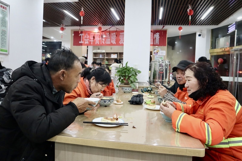 一直以来,环卫工人为城市的整洁默默付出,却因工作条件限制,难以吃上一顿热气腾腾、丰富多样的早餐。为切实解决这一问题,2024年,临泽县总工会全面走访城区一线环卫工人的早餐情况,并联合5家社区爱心餐厅,推出“一元爱心早餐”关心关爱活动,让城区86名一线环卫工人都能吃上暖心早餐。