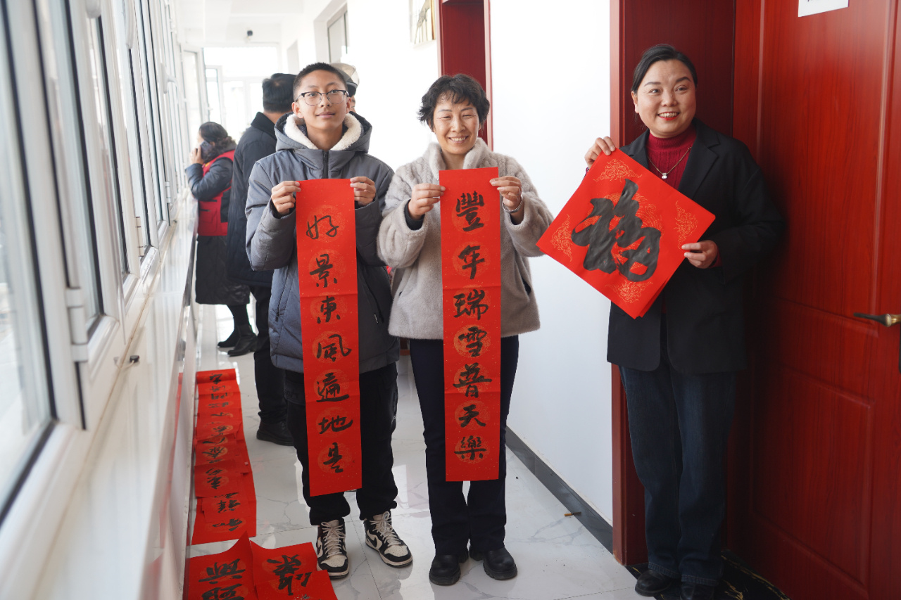 本次活动由平凉市总工会、平凉市工人文化宫共同举办。活动现场,人头攒动,文墨飘香,暖意融融。一副副寓意吉祥欢庆的春联,传递出工会组织对环卫工人的深深祝福和敬意。一幅幅精美的书法作品传递着对幸福生活的美好祝愿,社区居民们手捧春联和“福”字,脸上洋溢着幸福的笑容,感受到了浓浓的年味和工会的关怀,心中充满了对未来的美好憧憬和期待。