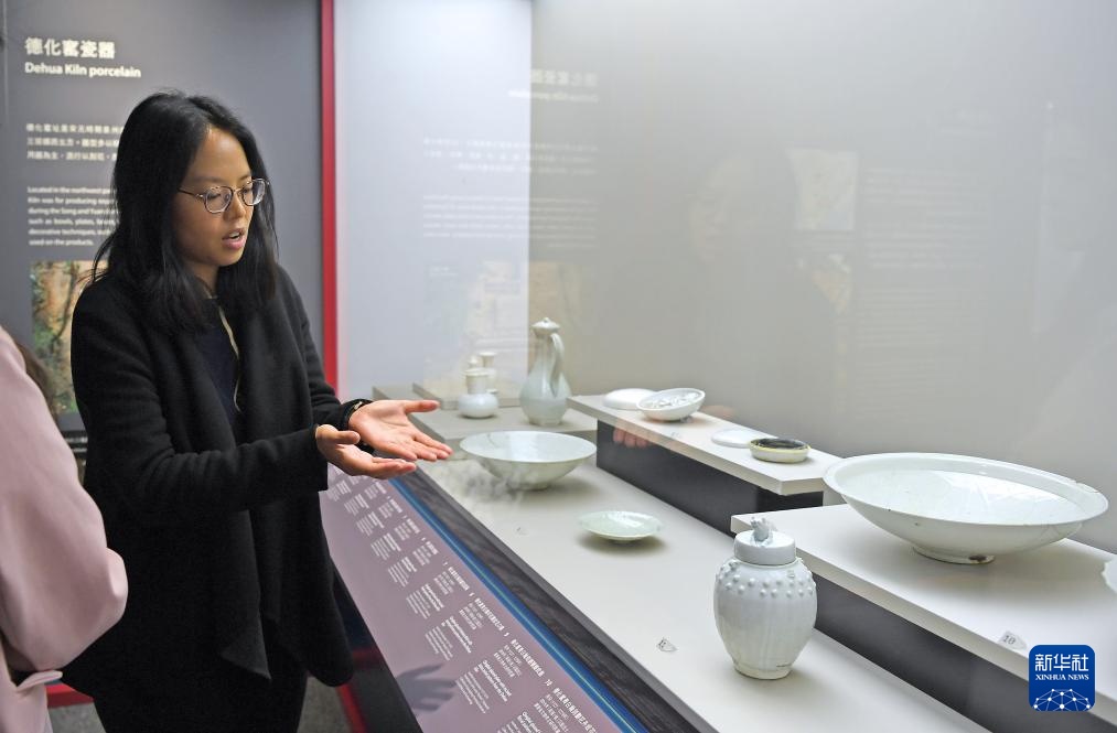 香港文物探知馆一级助理馆长李晓慧在讲解“从湾区启航:‘南海一号’与海上丝绸之路”展览上的展品(2024年11月28日摄)。新华社记者 陈铎摄