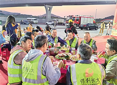 活动现场,茂名市总工会为一线职工准备了精美的“茂”字号礼盒。餐桌上,热气腾腾的菜肴琳琅满目,既有地道的家乡美味,也有精心准备的茂名特色菜肴。大家围坐一起,举杯共祝,分享过去一年的收获与喜悦,畅谈对未来的憧憬与期待。