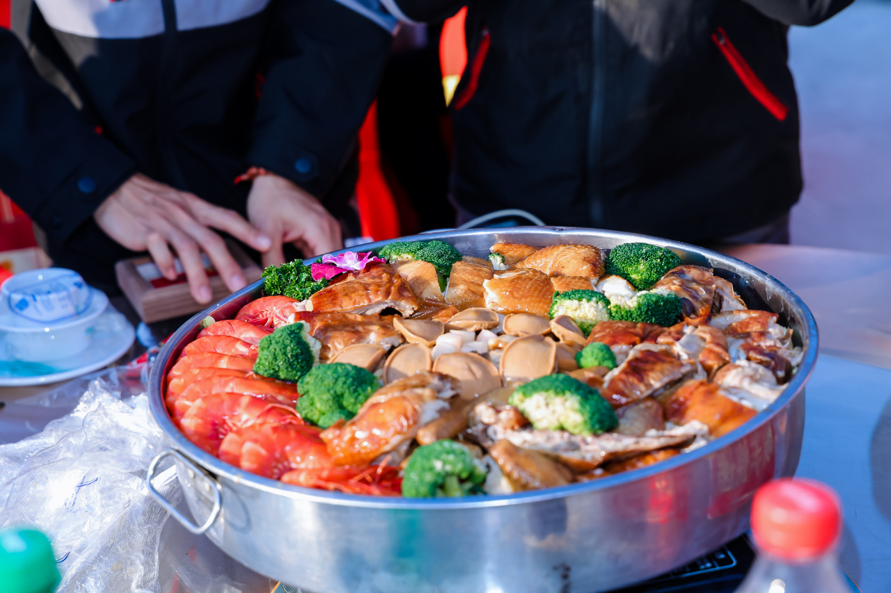在位于广东奥林匹克体育中心的第十五届全国运动会主场馆项目工地主现场,省人大常委会党组成员、省总工会主席吕业升,省总工会党组书记温文星,省总工会党组成员、省纪委监委驻省总工会机关纪检监察组组长梁小岸,广州市人大常委会党组副书记、副主任,市总工会党组书记、主席唐航浩等与350名建筑工人、外卖快递员、网约车司机、环卫工人等坚守岗位留粤过年的一线劳动者代表欢聚一堂,包饺子、发礼包、吃盆菜、看表演、叙家常,共戴工会定制节庆红围巾,共迎金蛇新春佳节,向异地务工职工群众致以亲切问候和新春祝福。