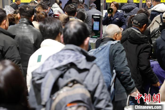 铁路上海站工作人员引导旅客有序验票上车。中新网记者 殷立勤 摄