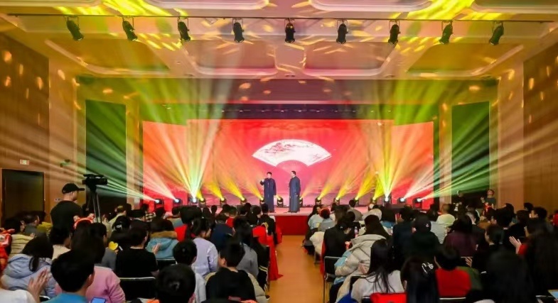 随后,相声《欢歌笑语》以幽默风趣的语言将现场气氛烘托得更加热烈,演员们妙语连珠、机智对答,将生活中点滴趣事编织成一个个引人入胜的故事,让观众掌声、笑声不断;情景表演《梦想编织者》生动展示了经开区职工群众攻克技术难关的故事,他们日夜兼程、不畏艰难,编织着属于这片创新创业热土的辉煌梦想;民乐联奏《春节序曲》邀请经开区星海钢琴集团的民乐队为现场观众奉献精彩的民乐联奏,用中国传统乐器营造了浓厚、喜庆的新春氛围。