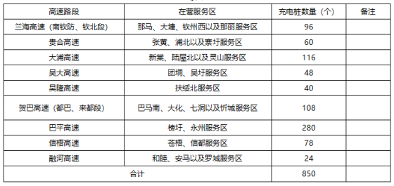 目前除兰海高速(南钦防段)沿线的服务区可能存在加密需求外,剩余在营高速路段中一是吴大、吴隆高速为货车群体提供充电服务的能力较弱,在目前有趋向以货车为主要充电需求对象的情况下,需对现有充电设施进行升级改造,以满足将来货车电气化带来的大量的货车充电需求。二是类似贵合高速张黄、浦北服务区的外接电问题,需适时增设电容或其他解决措施,以满足正常需求,暂无另行加密必要。剩余的其他服务区近2年暂未需要加密充电桩。
