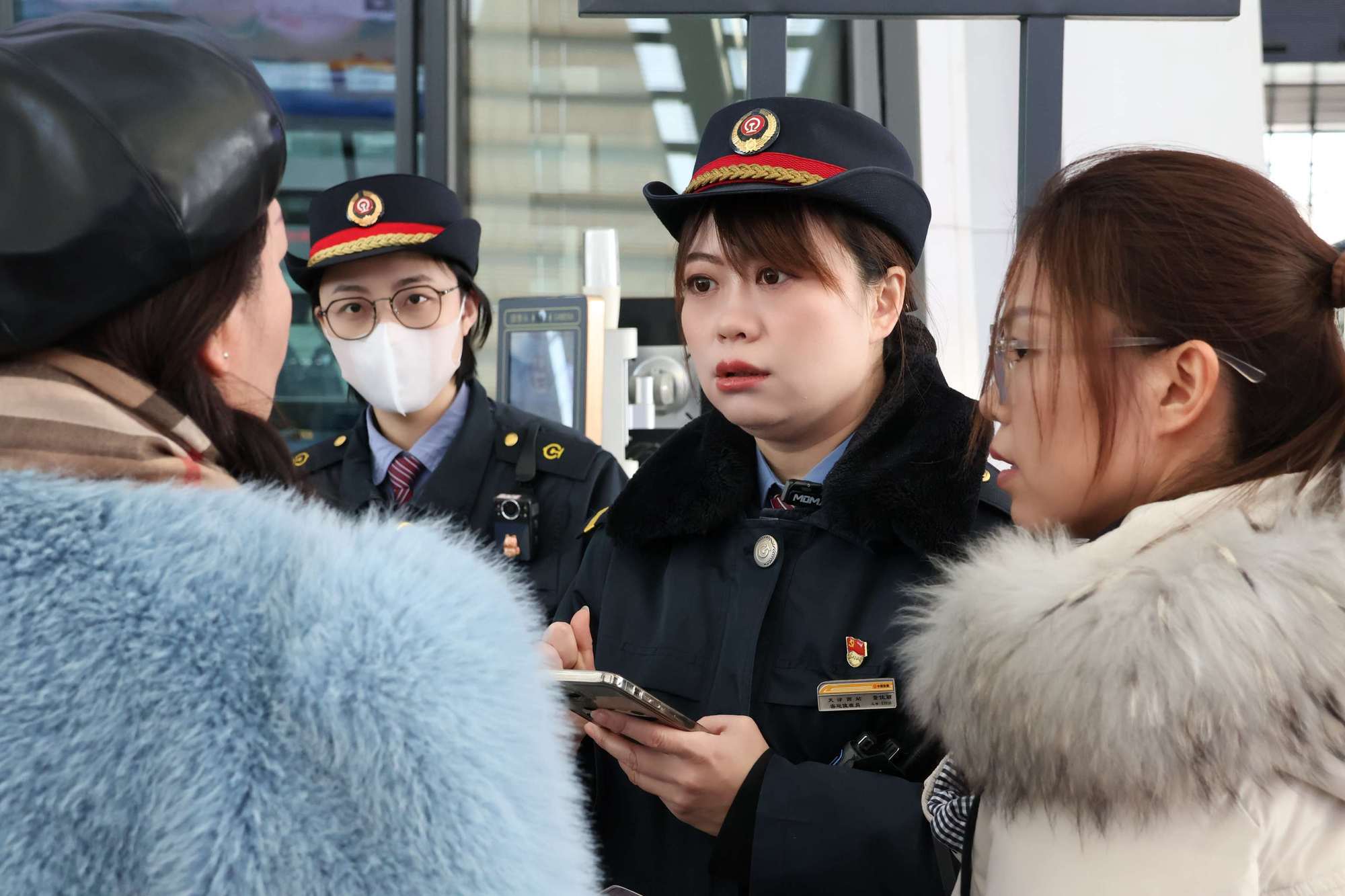 “您要去的站台在那边,我带您去吧。”面对新提问,董佳丽用微笑化解了旅客的焦急。她步履匆匆,引导一位又一位旅客踏上新旅途。