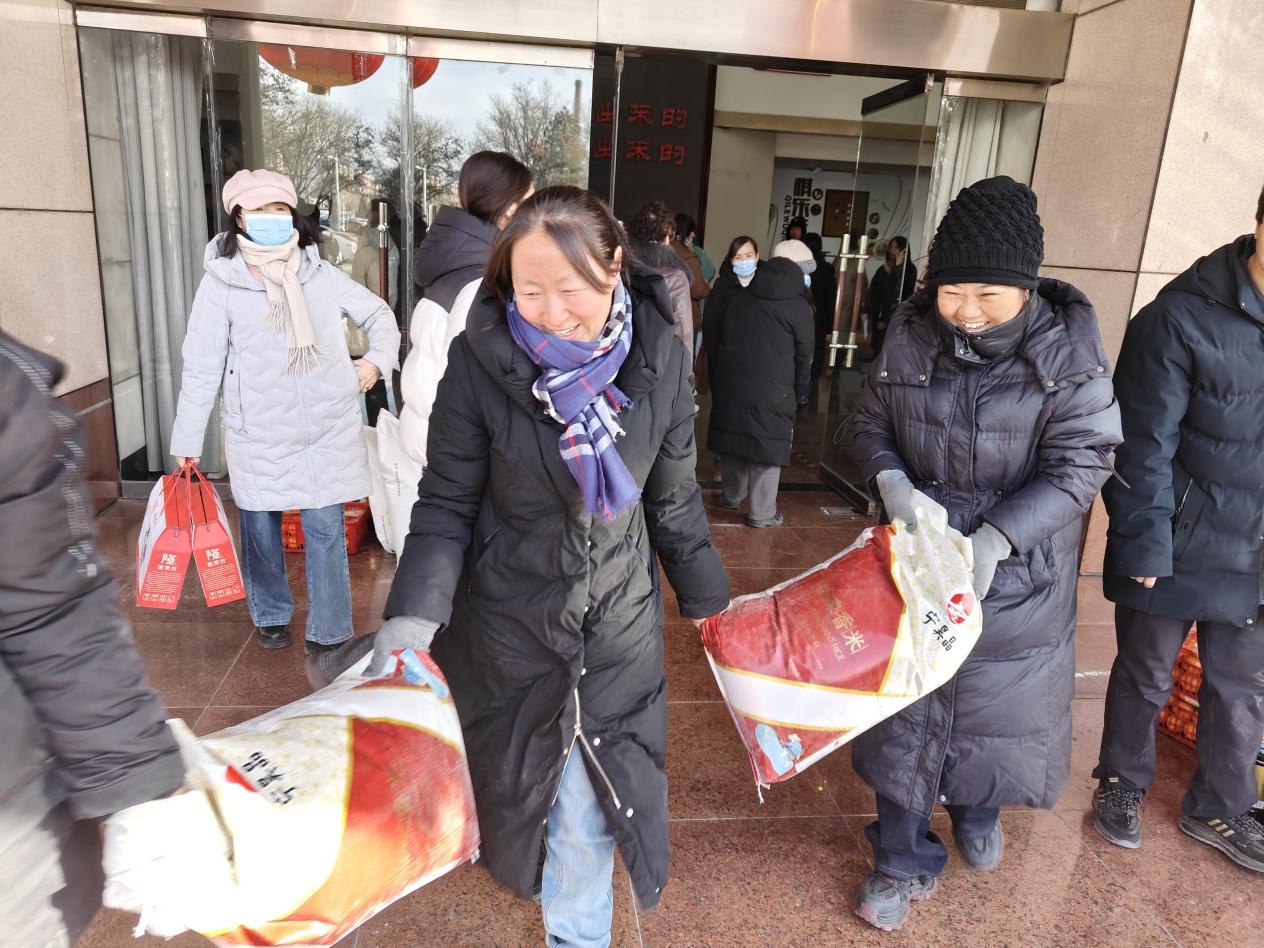 “走啊!来这边!”在宁夏石嘴山市大武口区工人文化宫内,三名职工兴高采烈地拎着两大袋米,一边呼唤一边向远处的职工们招手。近日,在大武口区总工会开展的“心系职工送温暖 工会服务在身边”送温暖活动中,220名职工领取到了工会发放的米、面、油等慰问品,同时收到了工会的新春祝福,感受到了来自工会的深情关怀。