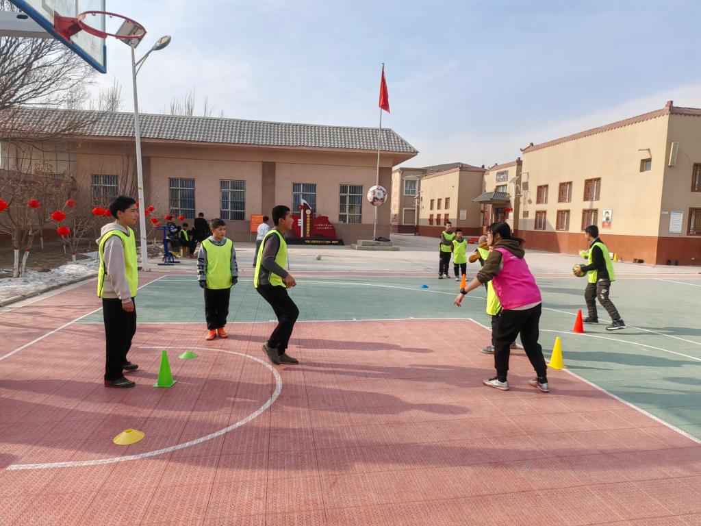 来自前进村的纳扎开提·买合米提江是喀什市第九中学初二学生,平日里她较为腼腆,基本不会主动参与学校组织的足球比赛活动。这次寒假期间,得知有来自中华女子学院足球队的女大学生来开展足球支教,她的心就像是被点燃了一把火,激动不已。
