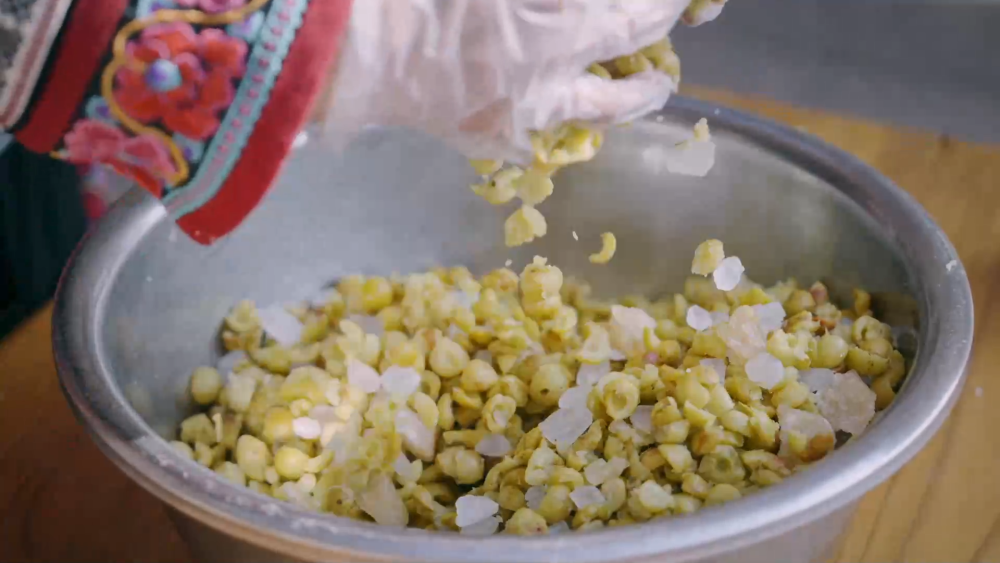 当地村民将采摘的新鲜野生橄榄精挑细选,清洗干净后上锅蒸熟以去涩,趁热剔除果核。然后,将处理好的橄榄果肉与冰糖、蜂蜜等配料充分混合后,密封在容器中静置约3天。