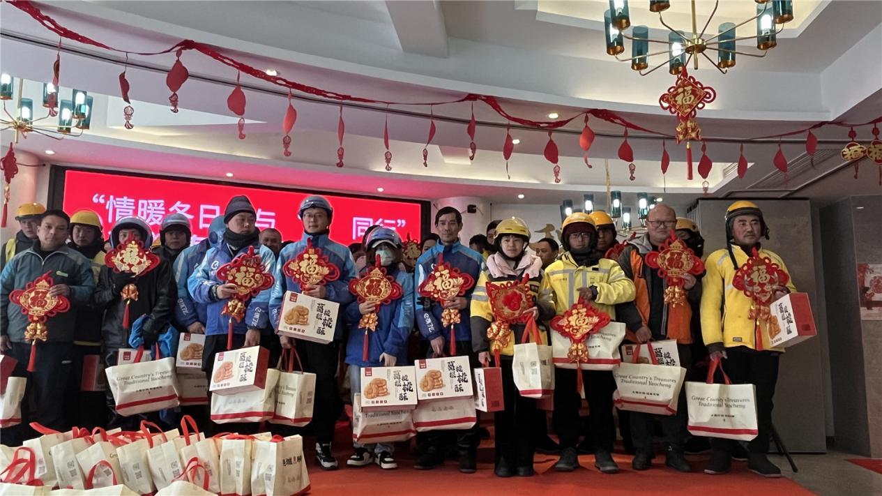 在春节即将来临之际,为表达对新就业形态劳动者的关怀与敬意,1月20日,安徽省池州市东至县总工会、县委社会工作部联合举办“情暖冬日 与‘新’同行”迎新春暖心慰问活动,在大家发超市工会驿站现场为78名新就业形态劳动者送上“温暖”大礼包和充满年味的“福”字,将党和政府的关心与工会组织的温暖送到新就业形态劳动者心坎上。