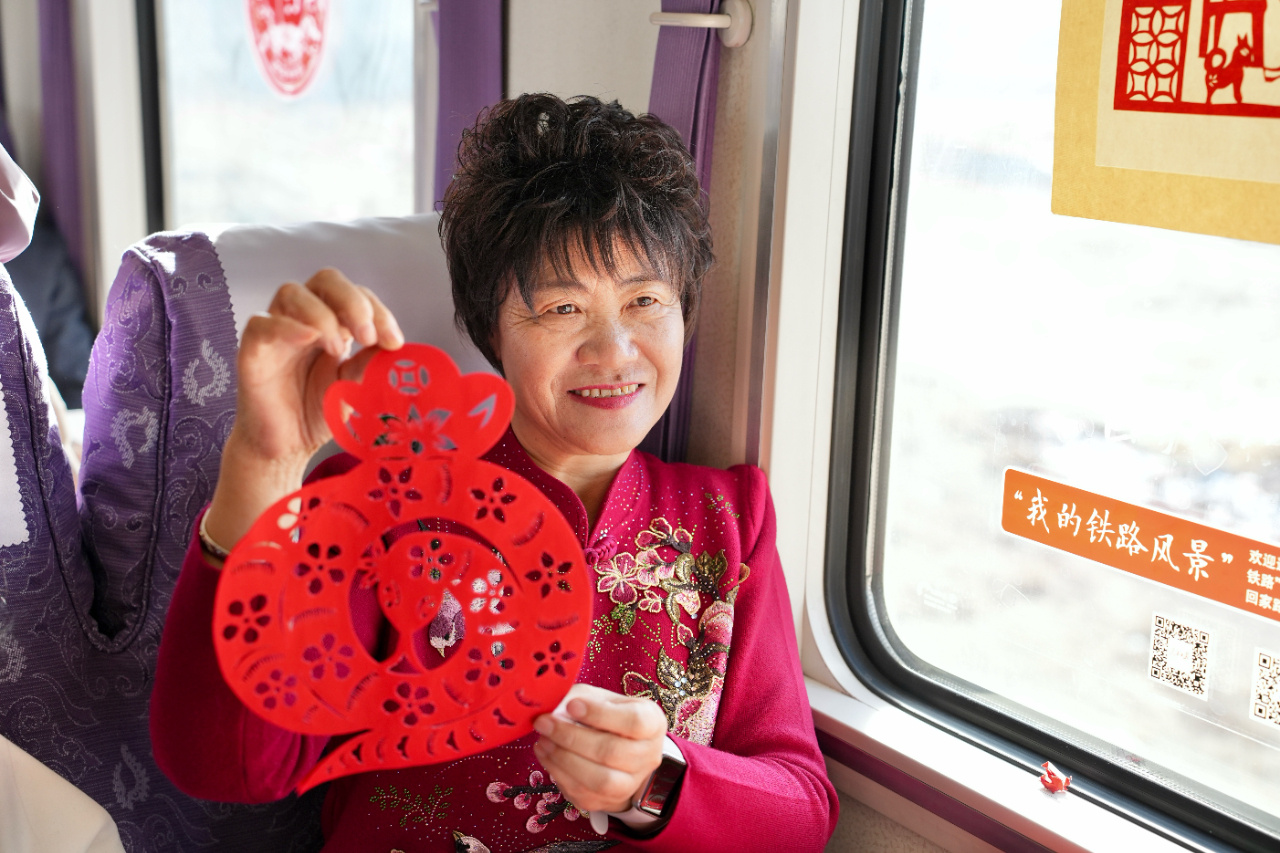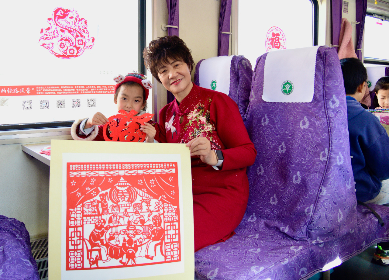 旅客陈女士兴奋地说:“我常坐这趟车回家,今年过年的氛围格外浓厚,有曲子戏和剪纸相伴,让我深切感受到最美的风景就在回家的路上,更不要错过爱你的人。”