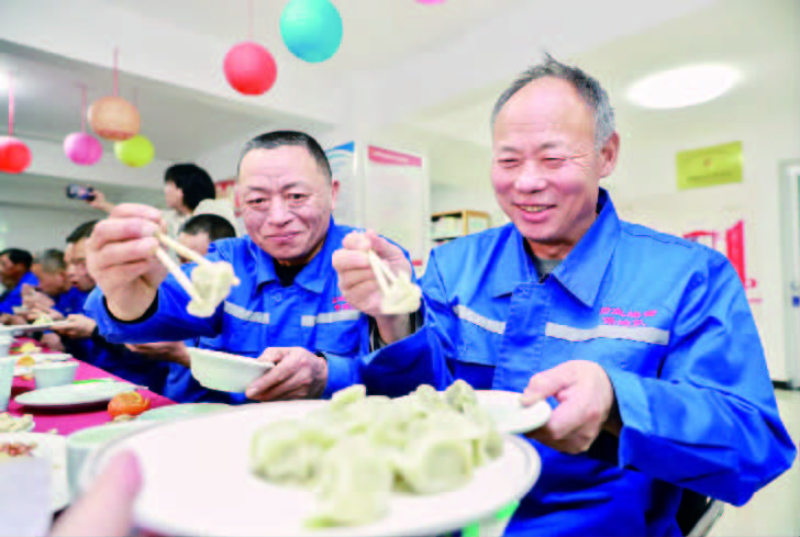 和平区劝业场街道保洁队员在静园社区工会驿站吃饺子过小年。沈岳 摄
