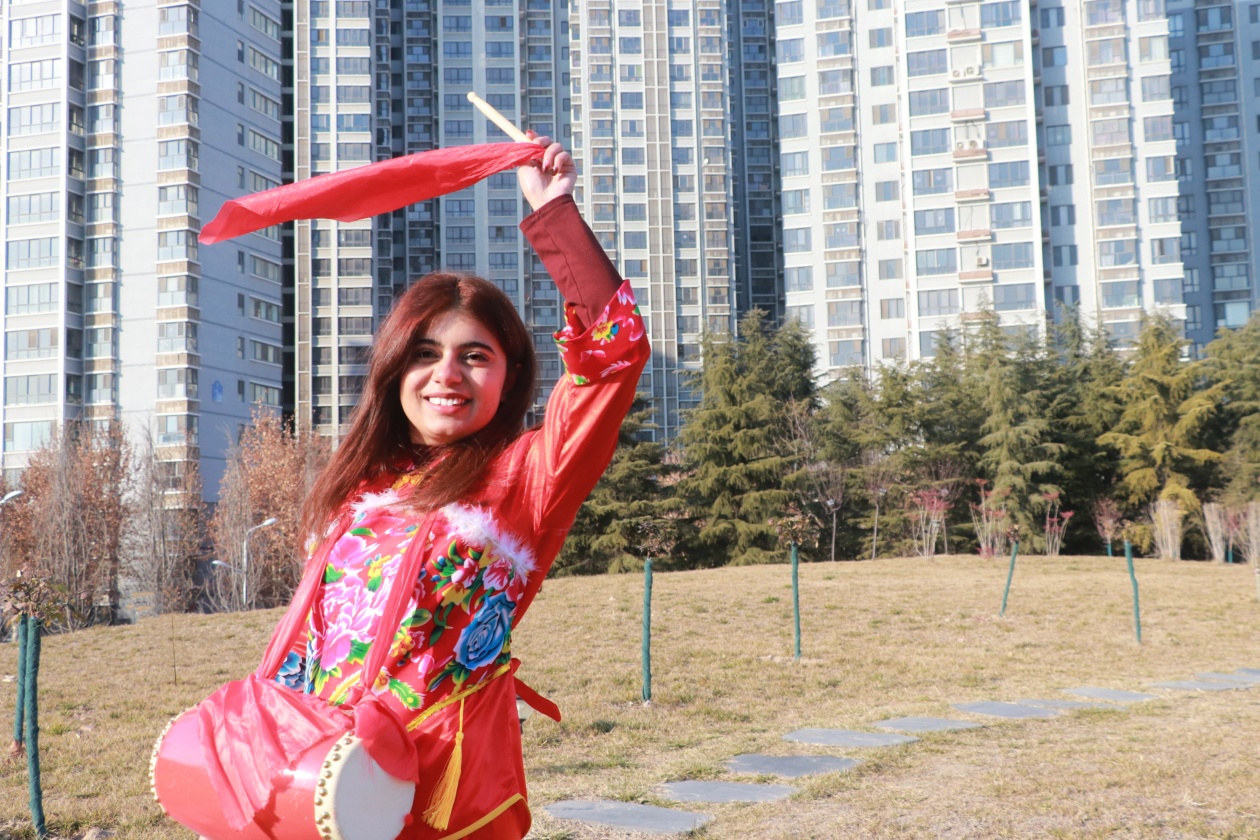 丽娜练习安塞腰鼓 供图:西安工业大学计算机学院、国际教育学院