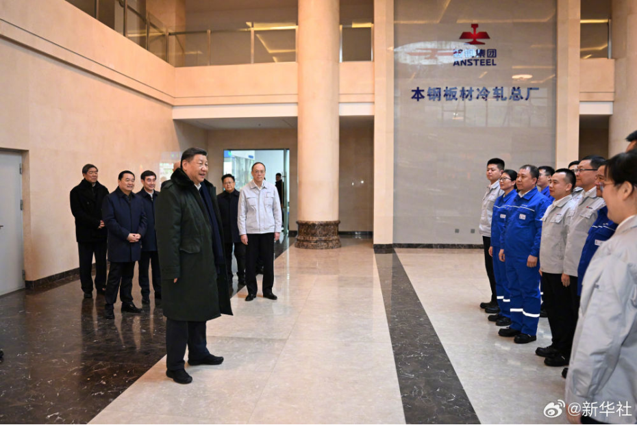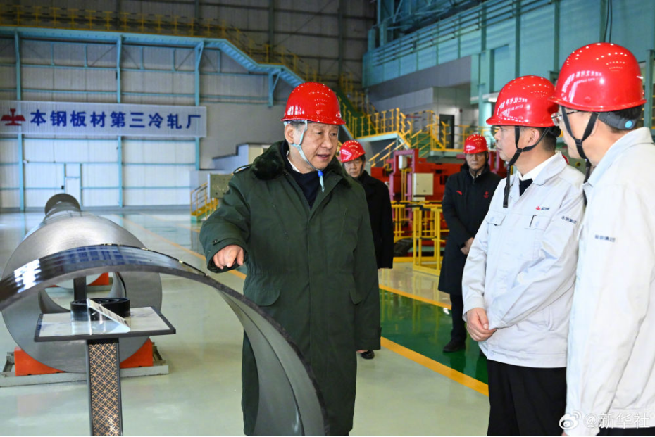 23日下午,习近平总书记来到辽宁本溪市考察本钢板材冷轧总厂第三冷轧厂,在集控中心了解集控智能系统运行情况,在车间了解冷轧工序、技术创新、产品性能,并亲切看望劳动模范、青年技术骨干、一线职工代表。习近平说,本钢是我们国家的老企业,通过鞍钢重组本钢,完善现代企业制度,推动产业转型升级,现在又焕发青春。钢铁产业是我们国家的重要基础产业,实体经济是国民经济的根基所在。要继续努力,把短板补上,把结构调优,继续为中国式现代化多作贡献。(文字记者:张晓松、朱基钗;摄影记者:李学仁、谢环驰、王晔、丁海涛、翟健岚)