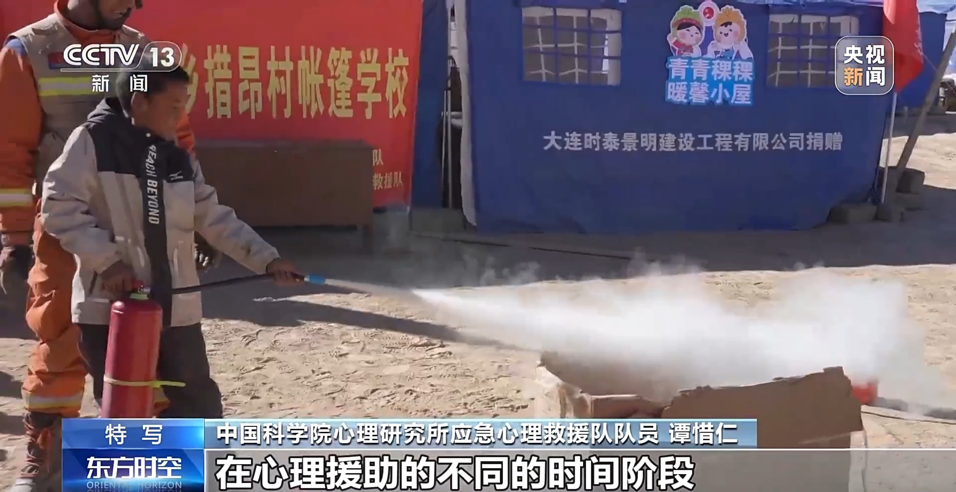 在定日县曲洛乡措昂村的安置点,来自中国科学院心理研究所应急心理救援队的队员谭惜仁给孩子们安排了一堂消防安全知识课,除了这样的课程,跳舞、画画、剪纸、踢球,都是孩子们每天最期待的活动。谭惜仁说,这些看似平常的活动,其实都是心理疏导的重要过程。