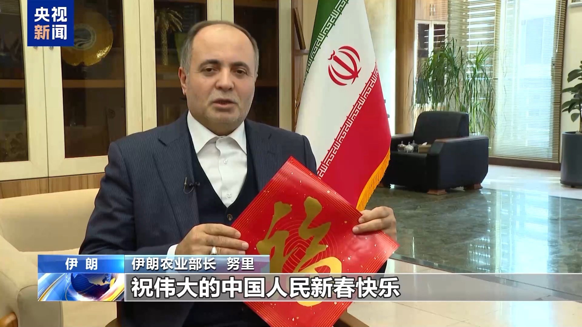 伊朗农业部长 努里:祝伟大的中国人民新春快乐,并祝愿中国人民在新的一年,成功、美满、幸福。同时也祝愿伊朗和中国,这两个伟大的国家繁荣昌盛。