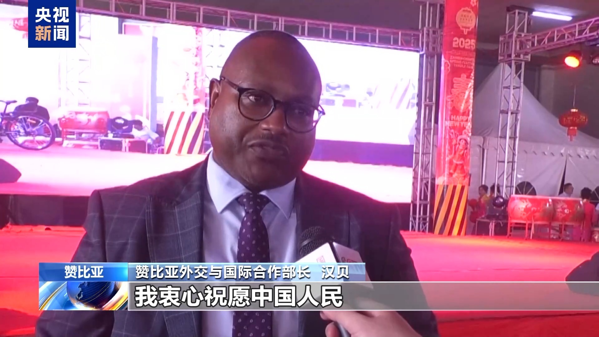 赞比亚外交与国际合作部长 汉贝:我衷心祝愿中国人民在新的一年里繁荣富裕,充满喜乐。请允许我用中文送上我的美好祝福,新年快乐。