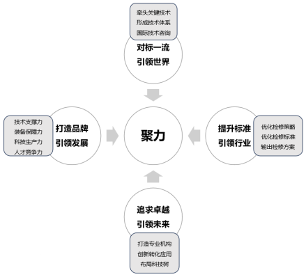 追求卓越,引领未来。面向未来,长江电力强化企业科技创新主体地位,坚持面向世界科技前沿、面向国家重大需求,聚焦主责主业,以科创品牌赋能企业创新力,提升应对未来风险和挑战能力,加快建成世界一流企业。打造专业机构,强化科研战略力量。“十四五”期间,精益检修团队成立了水电检修技术研究所,系统策划“三大专业”的六大科研方向,重点推进2项国家重点研发计划,抢占能源新赛道。创新转化应用,深耕大水电业务主战场。不断深化开展“智慧检修”关键领域攻关,发挥水轮发电机组检修、发输变电设备检修、水工金结设备设施检修三大主专业优势,努力实现水电检修自主可控。系统布局科技树,引领未来新兴产业。推动水电检修行业转型升级,发展新质生产力,拓展抽蓄、新能源等新业务服务保障领域,以水电技术引领未来新兴产业,保障大国重器的安全稳定运行。